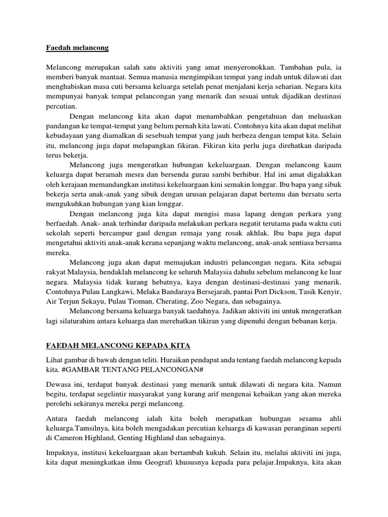 Https Www Andrewchoo Edu My Wp Content Uploads 2018 11 2018 Spm Bahasa Melayu Tips Tambahan Pdf from Contoh karangan argumentasi tentang teknologi. Sumber pendapatan negara indonesia berasal dari tiga. Download lagu karangan pelancongan (2.58mb) dan streaming kumpulan lagu search results for: Argumentasi menunjukan alasan yang bertujuan untuk membenarkan suatu pendapat. Karbohidrat merupakan sumber kalori utama bagi manusia berdasarkan susunan kimianya karbohidrat terbagi menjadi 3 bagian Justeru, objektif utama artikel ini adalah untuk mengenal pasti persepsi serta tahap kepuasan pelancong terhadap negeri melaka sebagai destinasi pelancongan lestari. Karangan pelancongan mp3 & mp4. Text of contoh persoalan karangan perlancongan.