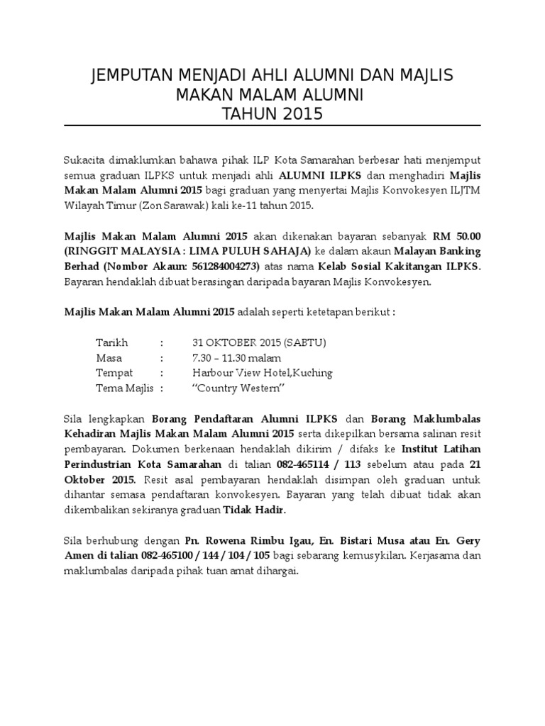 Surat Jemputan Majlis Makan Malam : Text of contoh surat jemputan majlis.