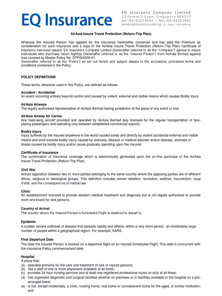 3 airasia insure travel protection one way international plan insurance coverage extract from insured by any other insurance policy or policies or otherwise reimbursed/replaced by airasia x. Please ensure that you keep the airasia insurance policy number in. What is airasia's policy if a flight is cancelled? Airasia offers insurance for its passengers on both regional, domestic and international flights. You can however, make multiple separate bookings to arrive at the destination of your choice.