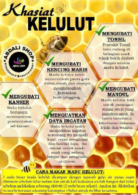 Dari jenis kelulut terbaik yaitu, trigona itama. Madu kelulut dan madu lebah. Madu kelulut selalu terpisah jika dicampur air. Selain daripada madu lebah asli. Antara kebaikan madu kelulut ialah berupaya membantu mengurangkan sel yang membentuk sel kanser serta membantu menghapuskannya. Madu kelulut asli berkhasiat untuk kesehatan dan kenjantanan pria, dengan cara minum mudah tanpa efek samping, telah dibuktikan oleh banyak testimoni. Madunya mempunyai banyak khasiat untuk memulihkan pelbagai penyakit kronik dan. Rasa madu kelulut adalah manis sedikit masam. Madu kelulut syamille at mihas 2013. Meredakan kesakitan penderita gastrik dan athma. Khasiat dan kebaikan madu kelulut. Madu berasal daripada lebah yang mendapatkan nektar dari sari bunga. Videonovember 15, 2015november 19, 2015madutongkoi leave a comment.